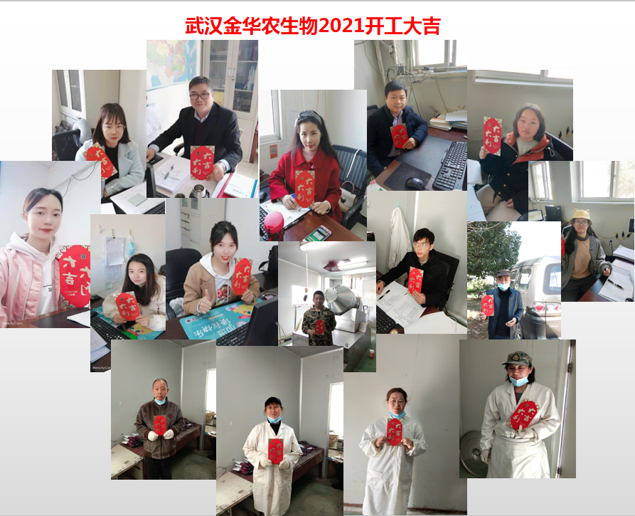 ? ? 武漢金華農(nóng)生物集團于老歷正月初八(2021年2月19日)正式上班運營,開工營業(yè),全體員工均有序投入工作,精神狀態(tài)飽滿,斗志昂揚,渾身充滿斗志,每個人信心十足,繼續(xù)為武漢金華農(nóng)動保事業(yè)努力奮斗,繼續(xù)為養(yǎng)殖事業(yè)提供專業(yè)、高效、盡責的服務(wù)!