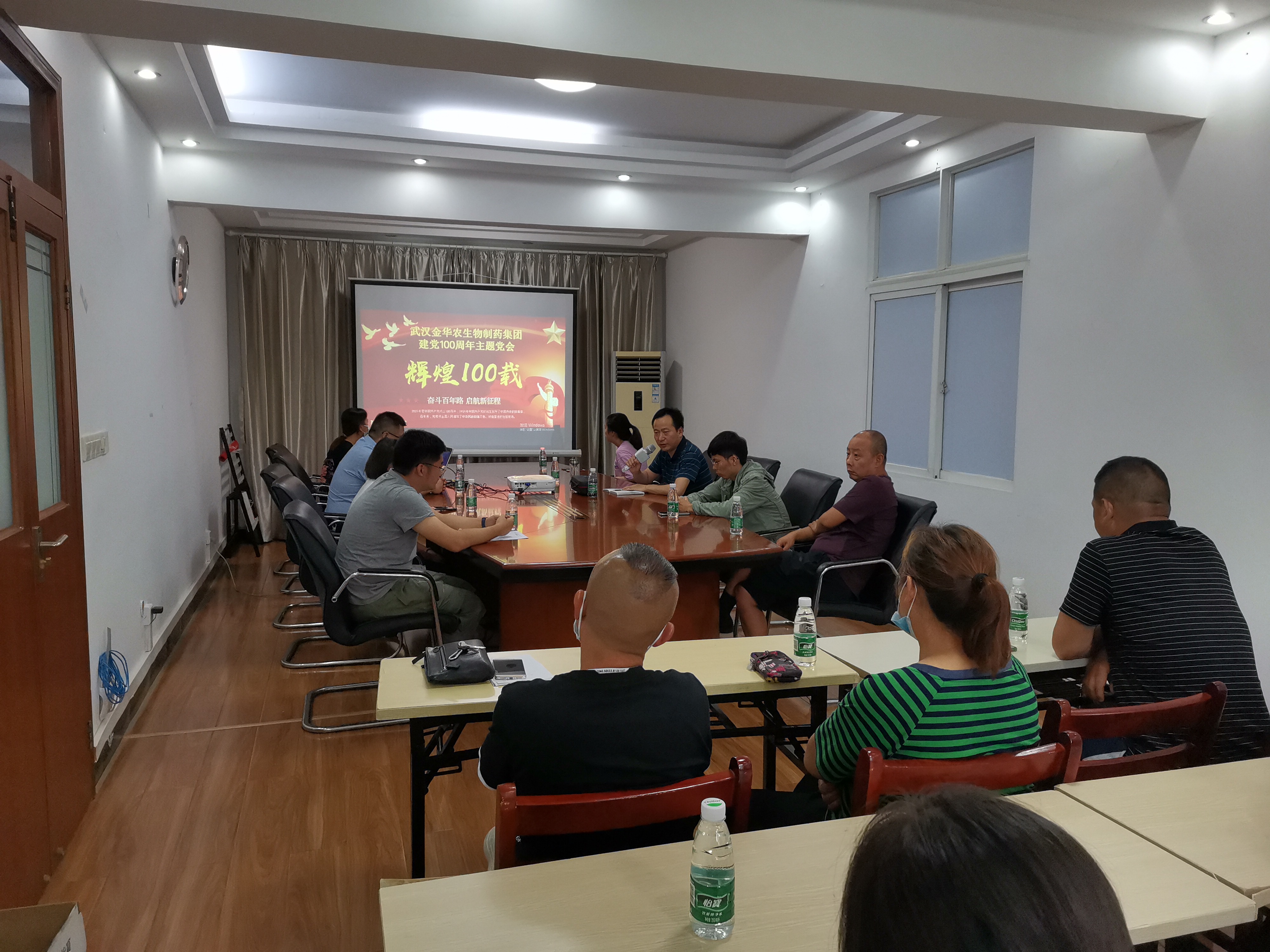 ? ? 為熱烈慶祝中國共產(chǎn)黨成立100周年,進(jìn)一步推進(jìn)黨史學(xué)習(xí)教育走深走實,7月1日,武漢金華農(nóng)生物集團(tuán)于華中農(nóng)業(yè)大學(xué)科技產(chǎn)業(yè)樓三樓會議室舉行慶祝中國共產(chǎn)黨成立100周年“輝煌100載”主題黨史學(xué)習(xí)大會。