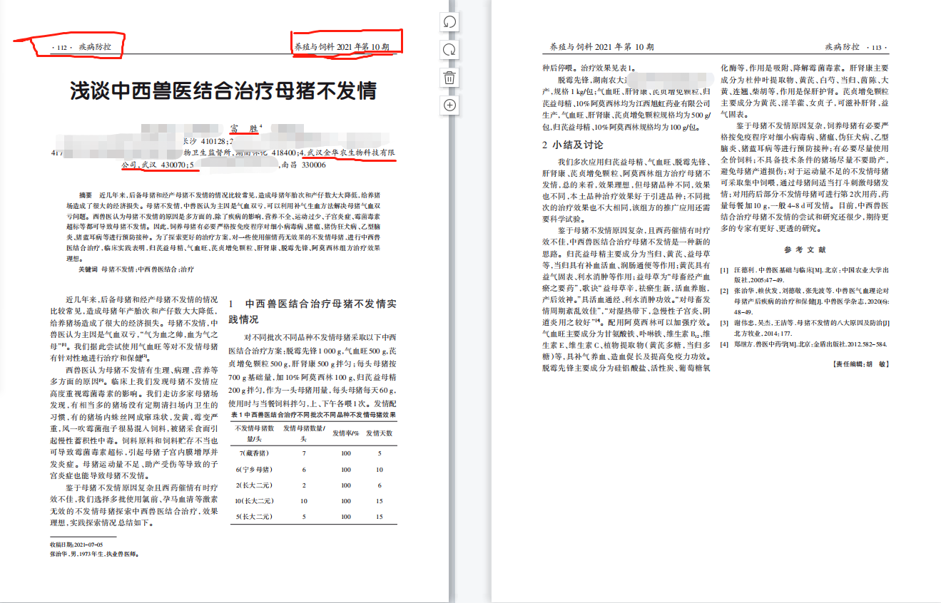 試驗(yàn)表明,武漢金華農(nóng)研發(fā)的新方法,解決母豬不發(fā)情的中西獸醫(yī)結(jié)合組方,效果理想。鑒于母豬不發(fā)情原因復(fù)雜且西藥催情有時(shí)會(huì)療效不佳,武漢金華農(nóng)選擇多批使用氯前、孕馬血清等激素?zé)o效的不發(fā)情母豬探索中西獸藥結(jié)合治療,取得了一定的效果。且此法易操作,穩(wěn)定系數(shù)高,藥物使用安全性高,推廣性較強(qiáng)。