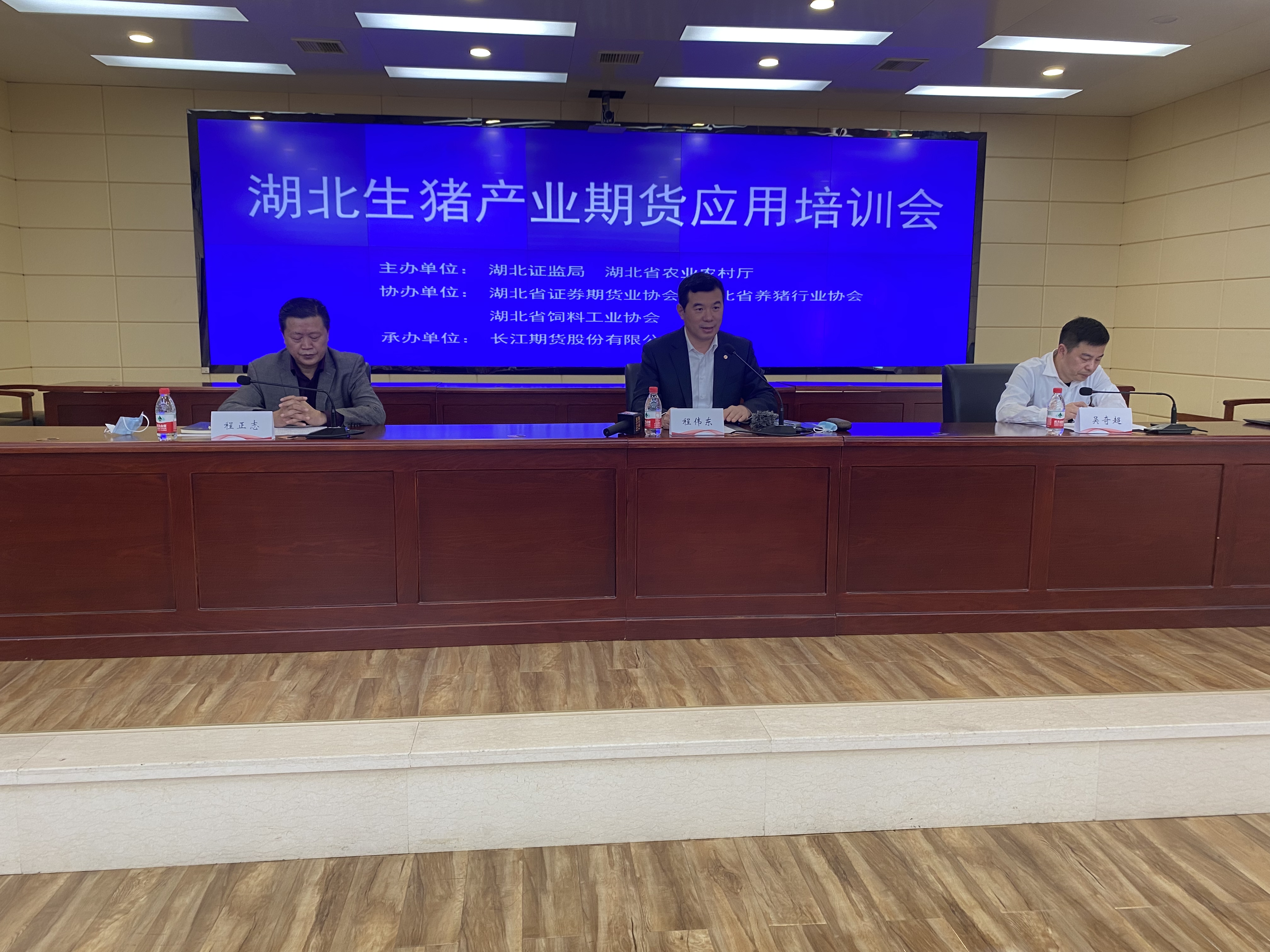 近日,由湖北省農(nóng)業(yè)農(nóng)村廳、湖北省證監(jiān)局、大連商品交易所聯(lián)合舉辦的湖北生豬產(chǎn)業(yè)期貨應(yīng)用專題培訓(xùn)會(huì)在湖北省農(nóng)業(yè)農(nóng)村廳5樓報(bào)告廳舉行。湖北省農(nóng)業(yè)農(nóng)村廳二級巡視員程正志、湖北省證監(jiān)局副局長吳奇超、大連生豬期貨交易所副所長程偉東出席了本次培訓(xùn)。