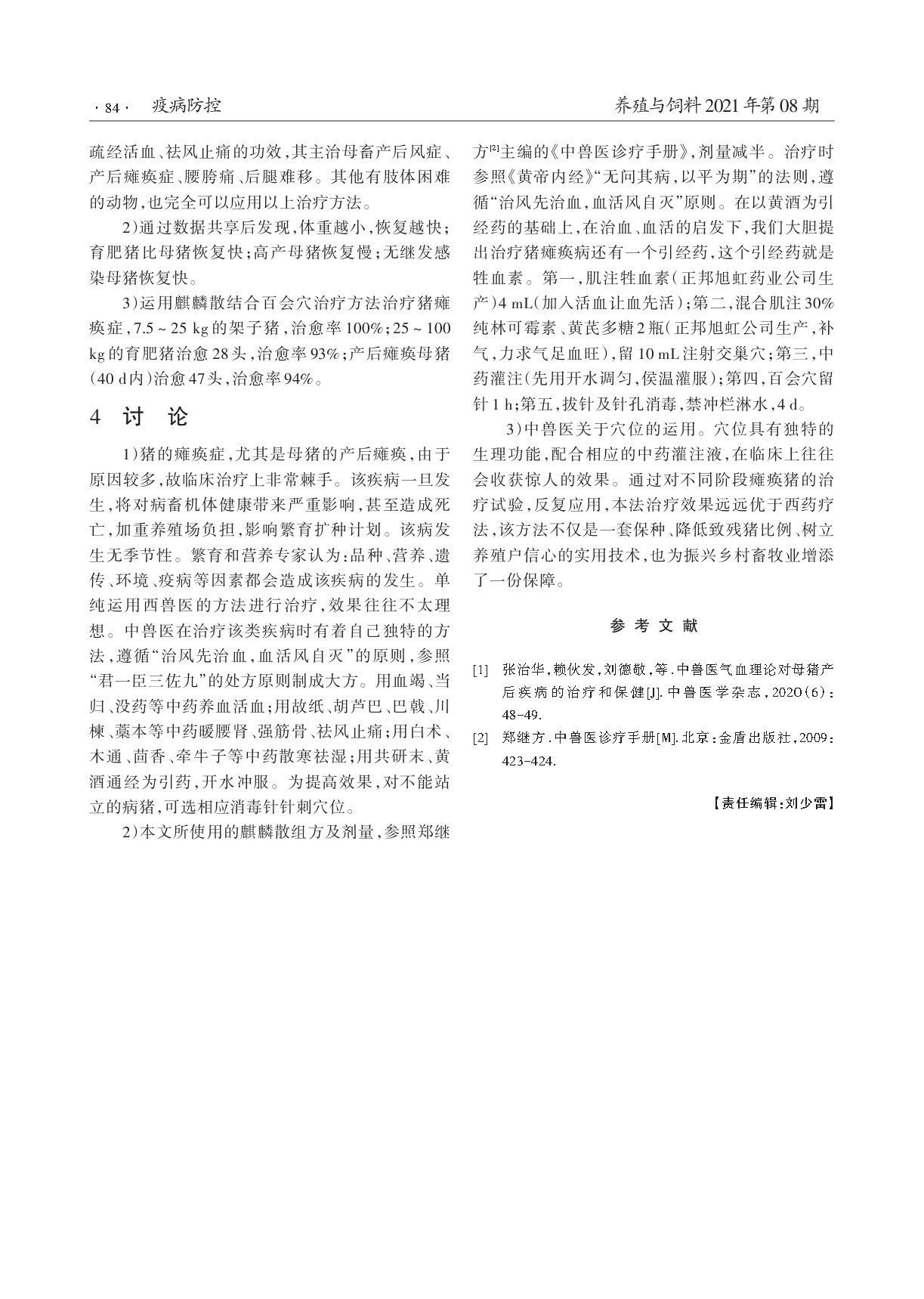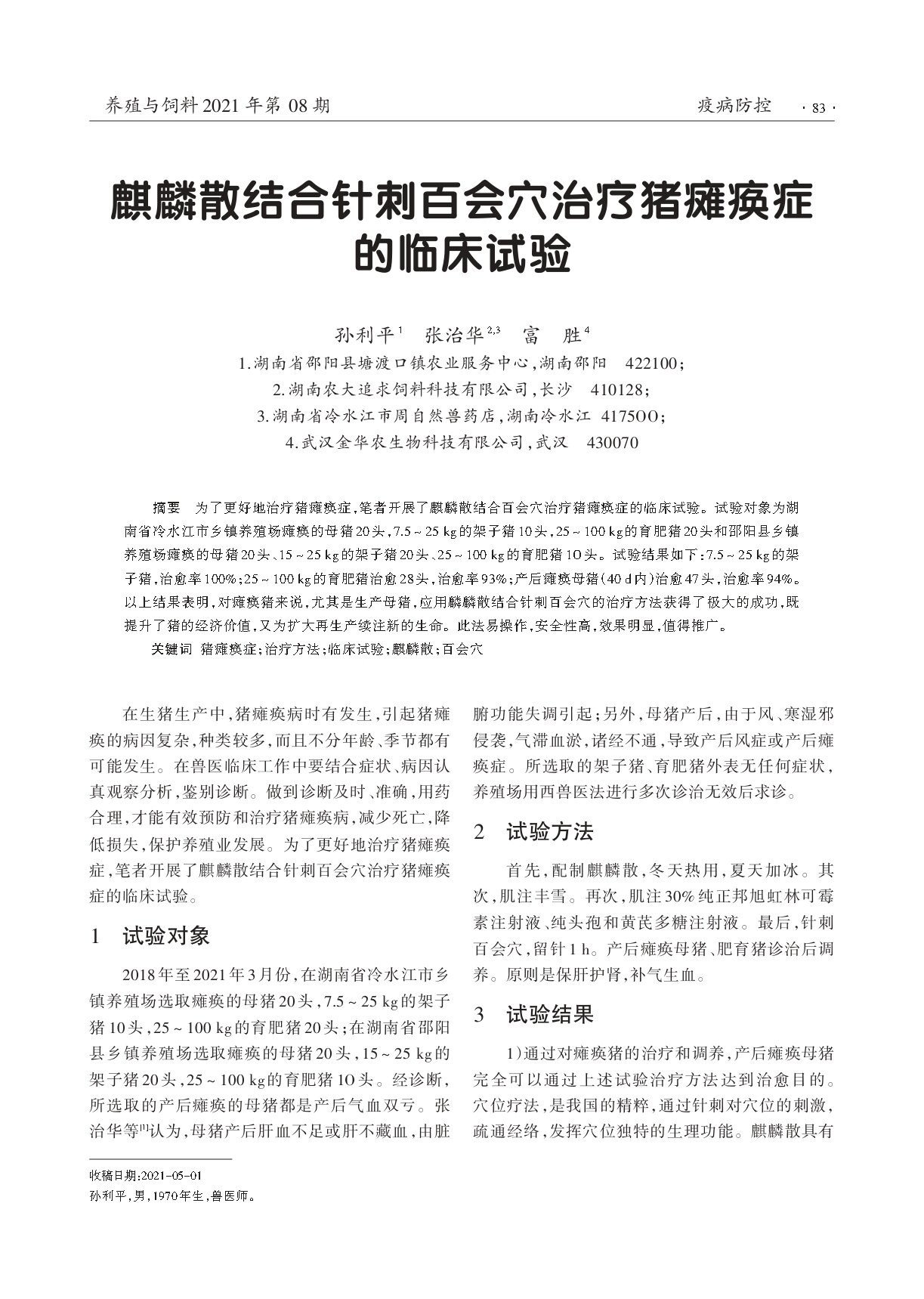 麒麟散結(jié)合針刺百會穴治療豬癱瘓癥的臨床試驗