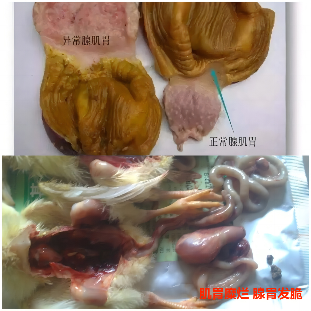 在南方,肉雞傳染性腺胃炎在4~8月發(fā)病率較高,這是一種傳染性病毒性疾病,發(fā)病原因不詳,并發(fā)癥多,主要特征是阻滯雞生長、消瘦、死亡。臨床癥狀為羽毛蓬亂、無神、翅膀下垂、臥地不起、采食量飲水廢絕、機體消瘦、雞冠蒼白萎縮、糞便白紅黑色,嚴(yán)重雞患有呼吸道癥狀。經(jīng)解剖發(fā)現(xiàn)雞腺胃腫大如球,腺胃壁增厚水腫,腺胃黏膜出血,雙向法氏囊萎縮。