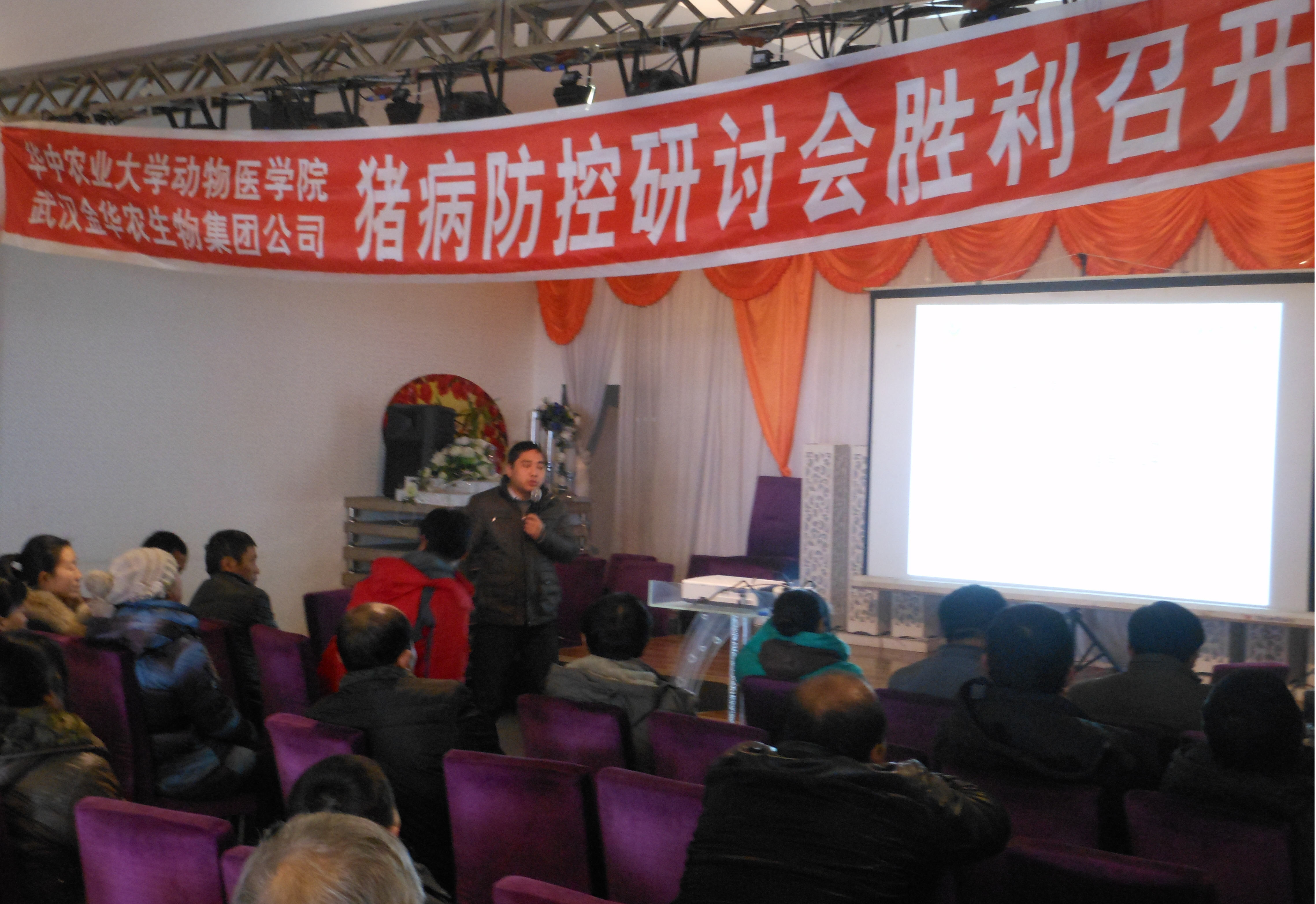 公司技術(shù)部胡老師首先對(duì)廣大養(yǎng)殖戶高度肯定金華農(nóng)產(chǎn)品的質(zhì)量和療效表示感謝,對(duì)他們選擇使用金華農(nóng)優(yōu)質(zhì)動(dòng)保放心產(chǎn)品表示歡迎,并闡明公司將會(huì)生產(chǎn)出更多優(yōu)質(zhì)、高效、綠色的產(chǎn)品來回報(bào)廣大用戶,公司技術(shù)部將加大市場(chǎng)服務(wù)力量,聯(lián)合華中農(nóng)業(yè)大學(xué)動(dòng)物醫(yī)學(xué)院專家教授,確保和幫助養(yǎng)豬戶解決困難,防控疫病發(fā)生。