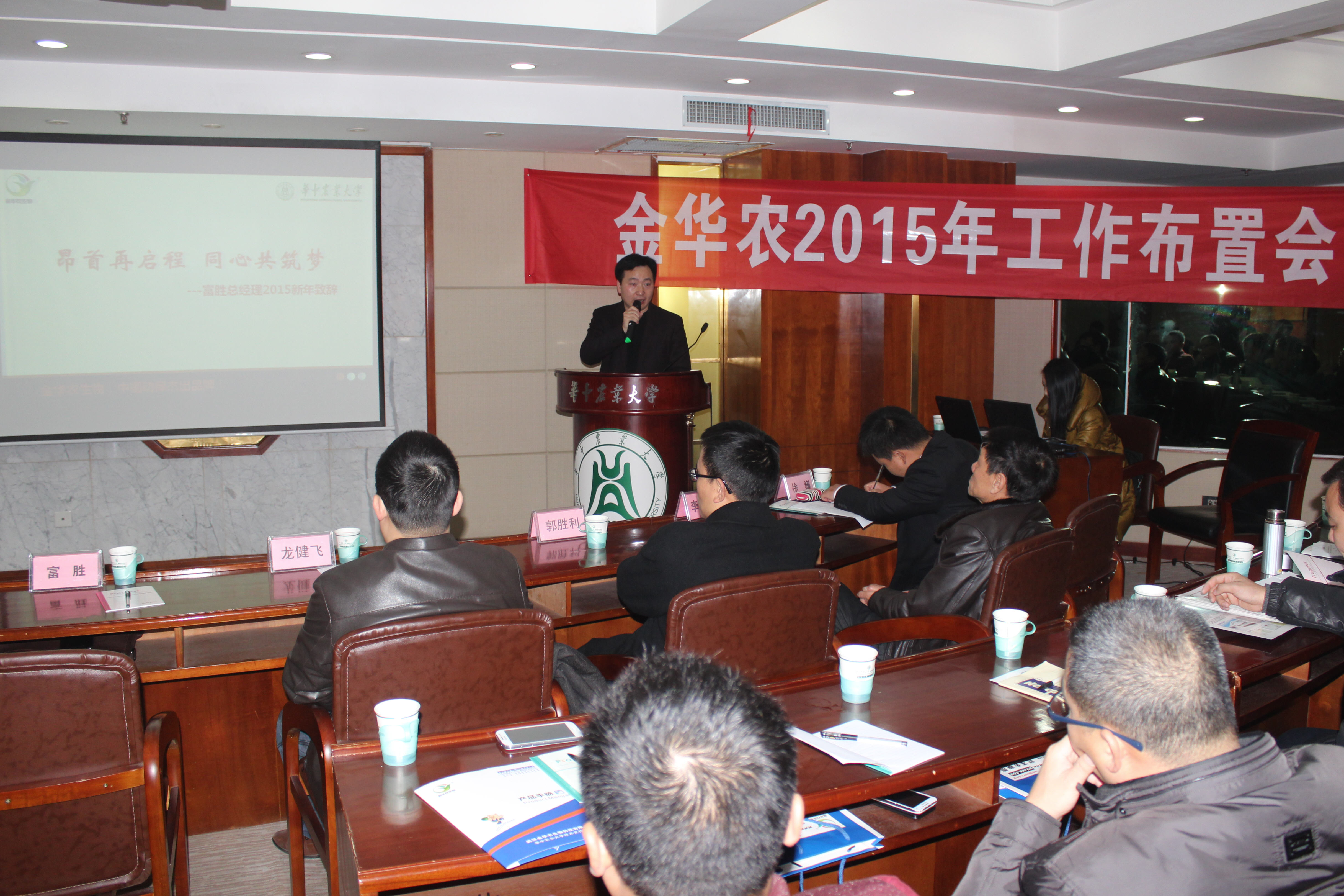 ?思想是行動的指揮棒!思想有多高,決定事業(yè)的發(fā)展能夠走多遠。在這個“攜作融合”的全新時代,金華農(nóng)人要以更大的氣魄和包容的胸懷,博采眾長、兼收并蓄,走聯(lián)合發(fā)展之路,聯(lián)合最好的研發(fā)支持、聯(lián)合最好的合作伙伴、聯(lián)合最優(yōu)的渠道網(wǎng)絡(luò)、聯(lián)合最優(yōu)的人才團隊,形成巨大的合心力,同心共筑偉大“金華農(nóng)動保產(chǎn)業(yè)”夢!金華農(nóng)承載的不是某個人的夢想,金華農(nóng)不是哪個人的金華農(nóng),她屬于你、我,屬于我們大家,承載著大家對共同事業(yè)的追求和成功的愿望,只要你足夠努力、足夠勤奮、足夠正能量、足夠敢于擔(dān)當(dāng),金華農(nóng)就一定能為你提供一方施展才華的舞臺?;仡櫾?jīng)經(jīng)歷的波折坎坷,當(dāng)公司的業(yè)績在短短幾年之內(nèi),從無到有,從幾十萬到幾千萬到制定更高的目標;當(dāng)公司的團隊從少到多、從孱弱到優(yōu)良到精兵強將各領(lǐng)風(fēng)騷;當(dāng)我們事業(yè)的目標跨越一個個高度,從不敢想到敢想敢拼……我們看到,無數(shù)個發(fā)展夢想在金華農(nóng)得到實現(xiàn),無數(shù)個不可能在金華農(nóng)變成了現(xiàn)實,金華農(nóng)的優(yōu)秀同仁們,是你們精誠團結(jié)、攜手并進,一次次將銷售業(yè)績刷新,一次次將夢想刷新!2015年,我們要為擁有夢想的自己加油!為擁有夢想的團隊加油!為擁有夢想的金華農(nóng)加油!
