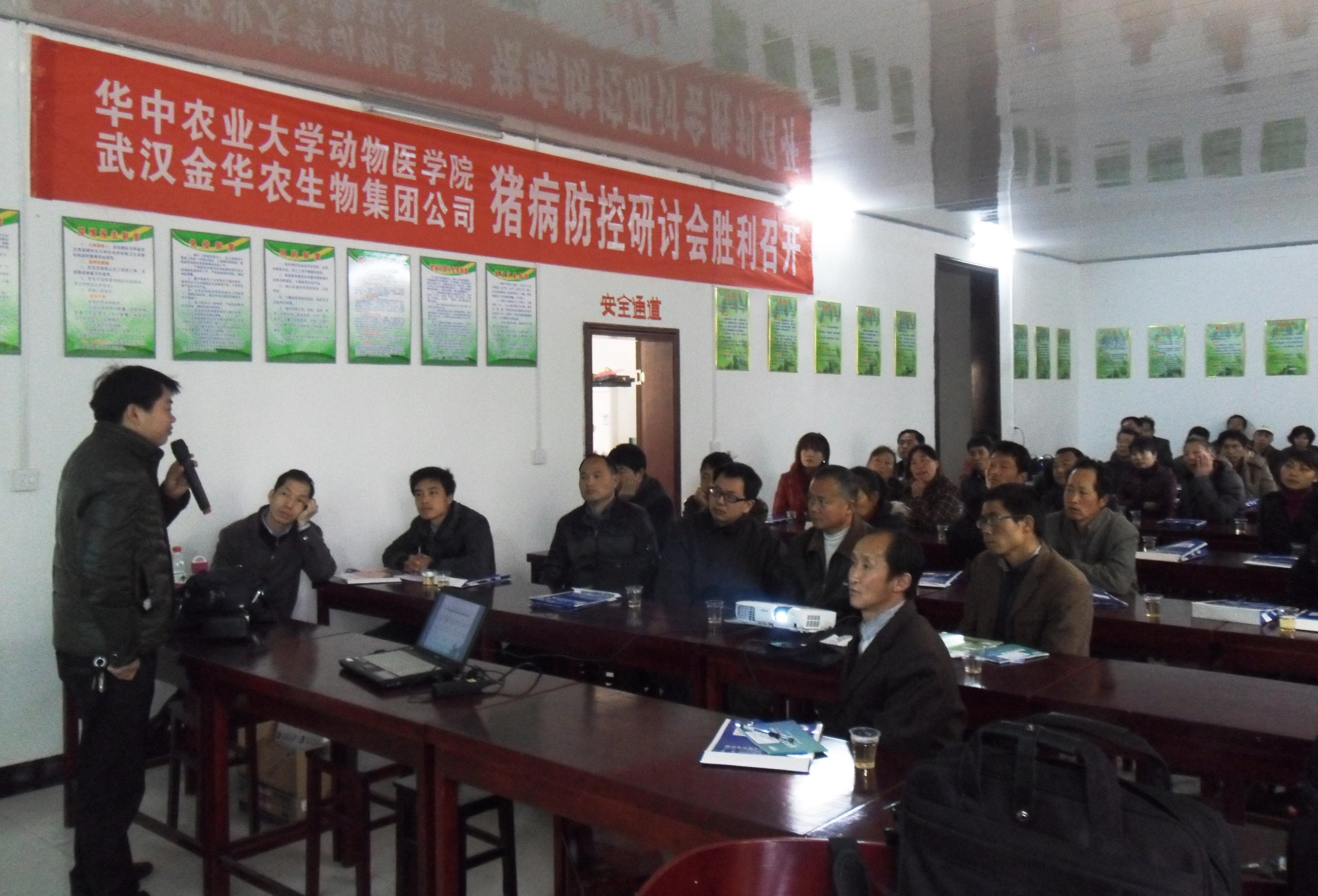 ?3.15消費(fèi)者權(quán)益保護(hù)日之際,武漢金華農(nóng)生物公司走進(jìn)革命老區(qū)黃岡,召開了一場(chǎng)別開生面的“動(dòng)保質(zhì)量行”研討會(huì)。華中農(nóng)業(yè)大學(xué)動(dòng)物醫(yī)學(xué)院的專家、公司技術(shù)部老師,與來(lái)自黃岡養(yǎng)殖示范村的72家養(yǎng)殖場(chǎng)代表共一百余人參與了此次交流與討論。