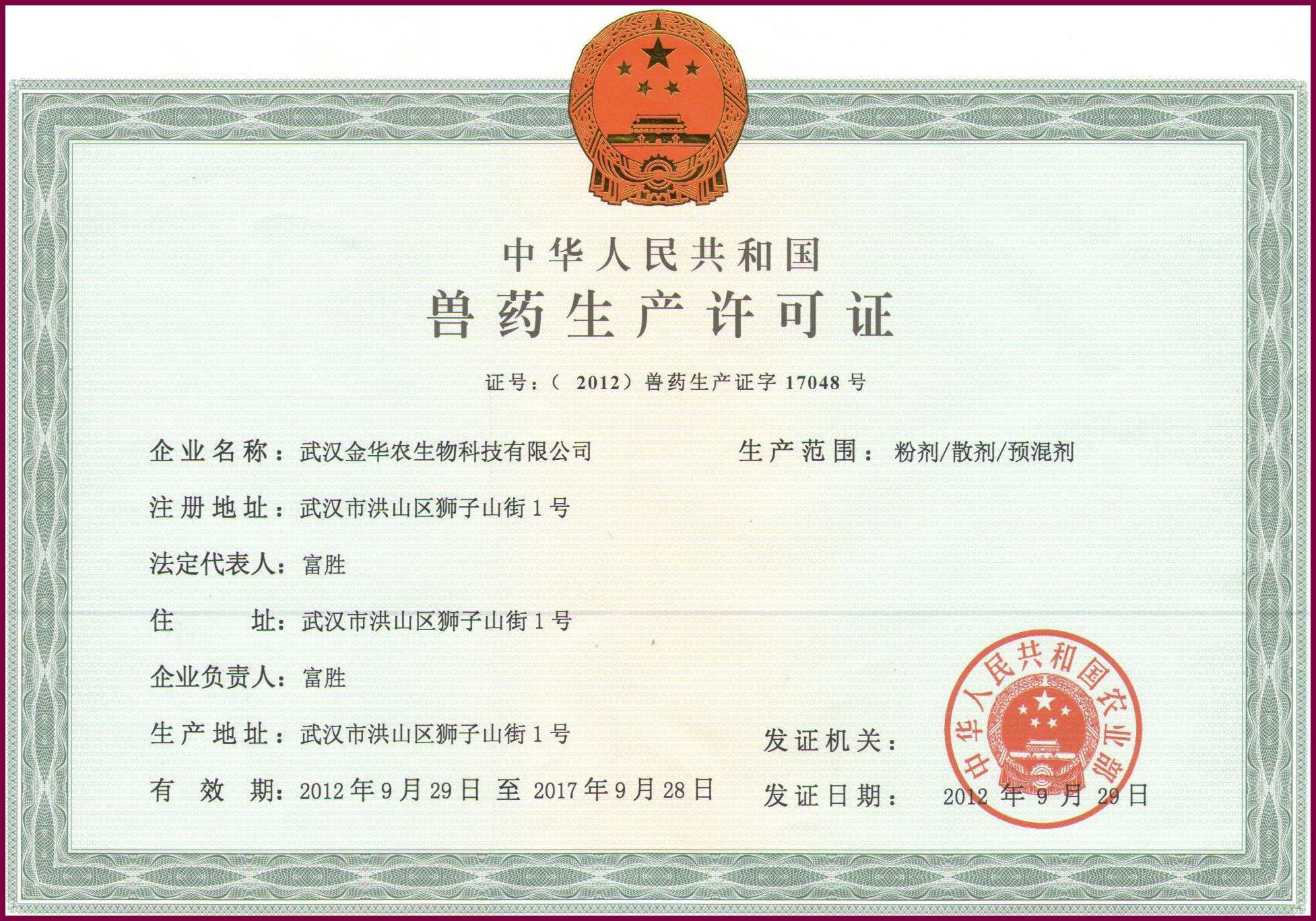 金華農(nóng)生物獸藥生產(chǎn)許可證