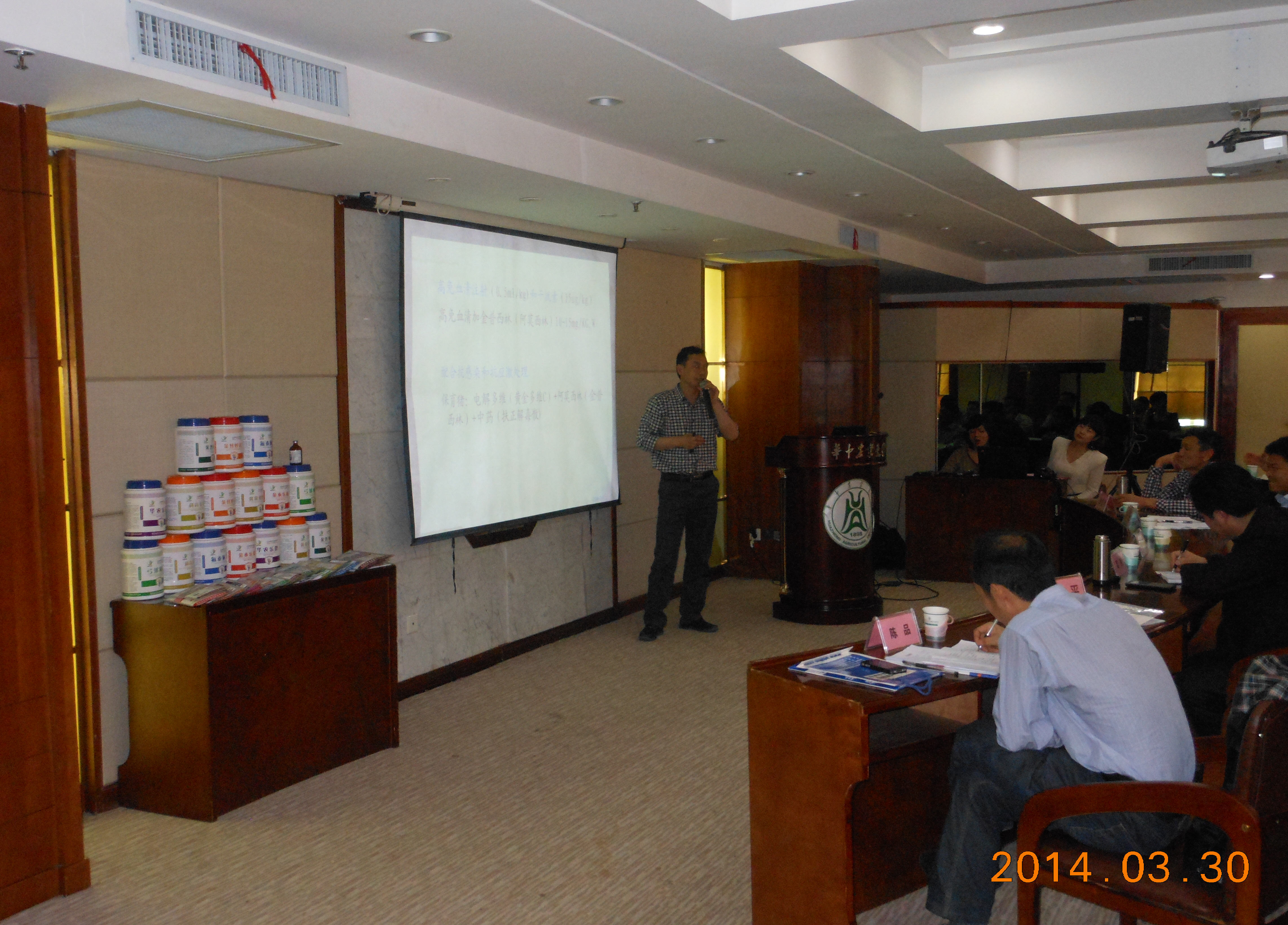3月29日至31日,武漢金華農(nóng)生物2014年第一季度培訓(xùn)學(xué)習(xí)及工作總結(jié)會議在華中農(nóng)業(yè)大學(xué)國際學(xué)術(shù)交流中心召開,來自全國16個省市的員工代表參會,華中農(nóng)業(yè)大學(xué)相關(guān)領(lǐng)導(dǎo)、動物醫(yī)學(xué)院相關(guān)專家和教授、及公司領(lǐng)導(dǎo)出席了此次會議。