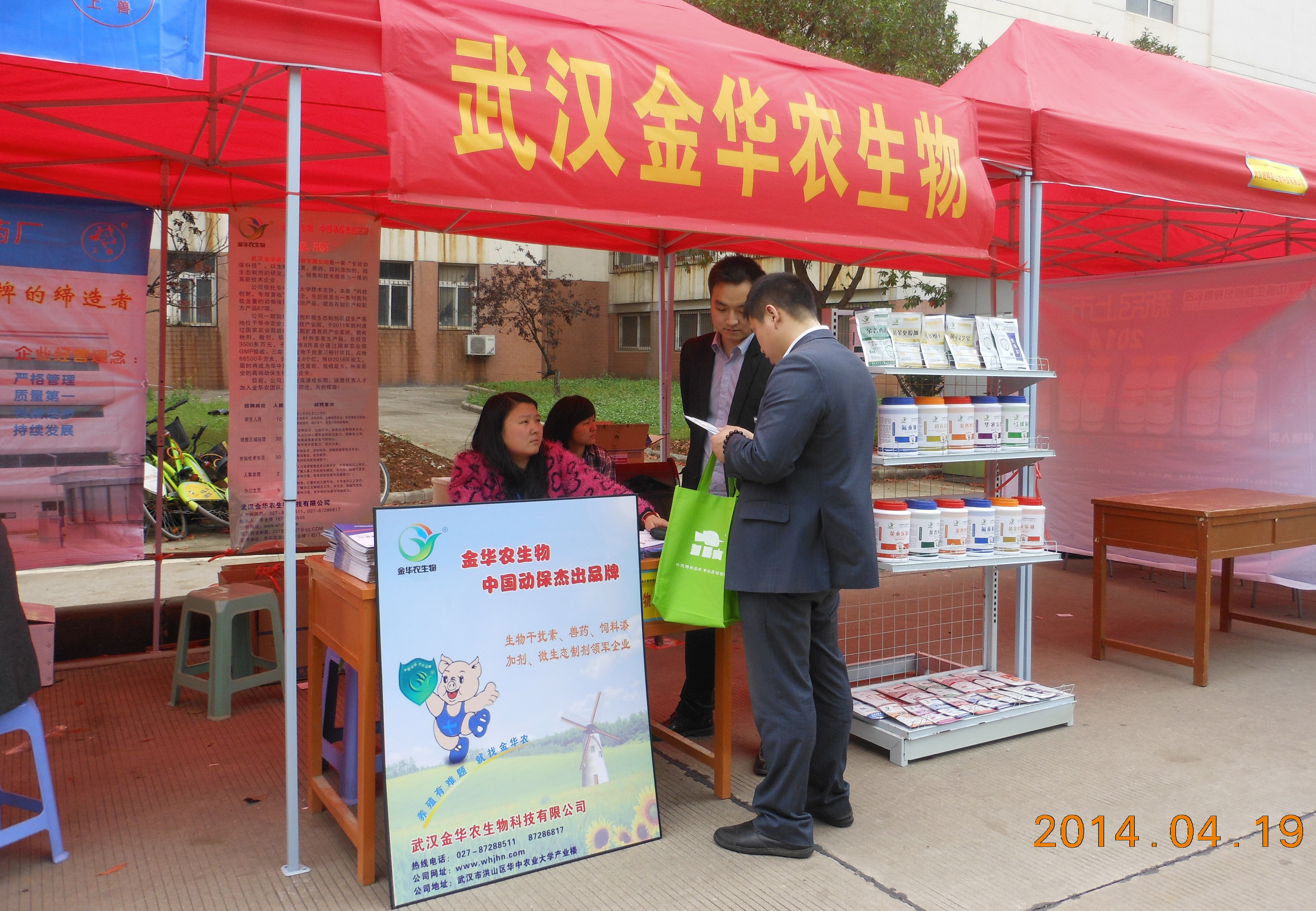? ?4月19-20日,第十五屆全國規(guī)?;i場主要疫病監(jiān)控與凈化研討會在華中農(nóng)業(yè)大學(xué)勝利召開,公司作為特邀嘉賓參會。在本次會議上,公司拳頭產(chǎn)品“藍圓瘟毒克、金替呼諾、氟泰肺寧、肝腎舒寧、附優(yōu)金樂”等得到專家們的大力推薦,并獲得參會經(jīng)銷商代表的高度關(guān)注。會場活動中,廣大養(yǎng)殖戶朋友對“金華農(nóng)”系列產(chǎn)品的優(yōu)質(zhì)療效和專業(yè)技術(shù)服務(wù)一致認可和肯定。???????