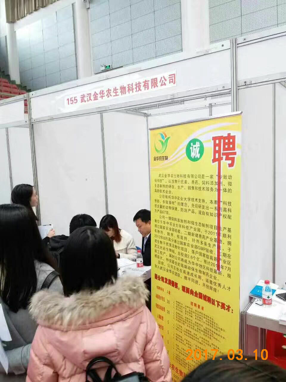 3月10日,武漢金華農(nóng)生物應(yīng)邀參加華中農(nóng)業(yè)大學(xué)春季畢業(yè)生供需見(jiàn)面會(huì)。隨著公司規(guī)模進(jìn)一步擴(kuò)大,發(fā)展步伐進(jìn)一步加快,原有規(guī)模不能滿足公司發(fā)展,增設(shè)部門和擴(kuò)充人手勢(shì)在必行。武漢金華農(nóng)提供的多個(gè)崗位受到華農(nóng)學(xué)子的熱烈追捧,爭(zhēng)先恐后前來(lái)咨詢和面試,競(jìng)聘各種崗位。經(jīng)過(guò)現(xiàn)場(chǎng)面試和篩選,公司在本次招聘會(huì)上收獲人才頗豐!