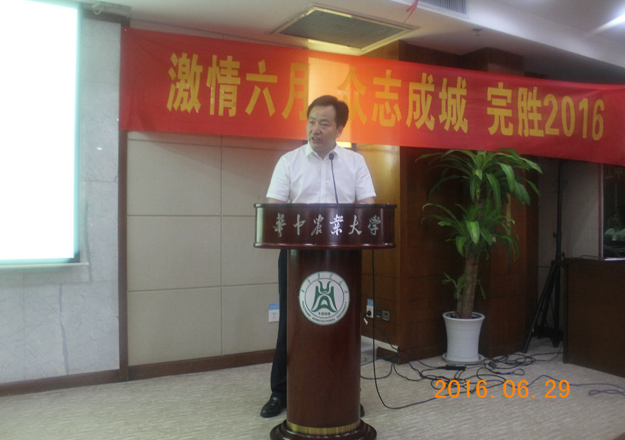 在這驕陽似火的的6月,我們相聚在華農(nóng)獅子山,這個靈杰俊秀之地,我謹(jǐn)代表武漢金華農(nóng)生物科技有限公司對你們的“回家”表示最熱烈的歡迎!代表公司向這半年以來奮勇拼搏在市場銷售一線的全體員工表示誠摯的問候!
