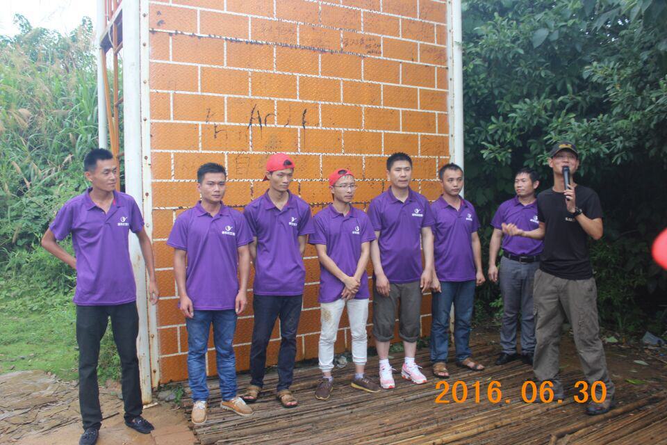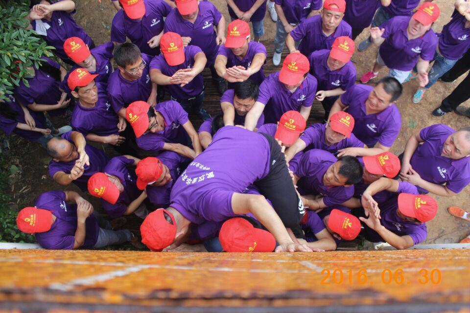 “金華農(nóng),加油!金華農(nóng),加油!金華農(nóng),必勝!金華農(nóng),必勝!……”踏著李奔、陳維利、劉傳忠、曹玉廣、唐友琦、王海峰、陳進(jìn)調(diào)組成的第一層、第二層“人梯”,我們的團(tuán)隊(duì)開始往上爬,風(fēng)雨交加,墻面很滑,踩過兩道“人梯”,公司綜合辦主任黃凡第一個(gè)躍過墻面,回過頭來,他開始構(gòu)建“頂層”防線,一個(gè)、兩個(gè)、三個(gè)……越來越多的人在隊(duì)友的幫助下,成功翻越,我們的目標(biāo),是不落一人。