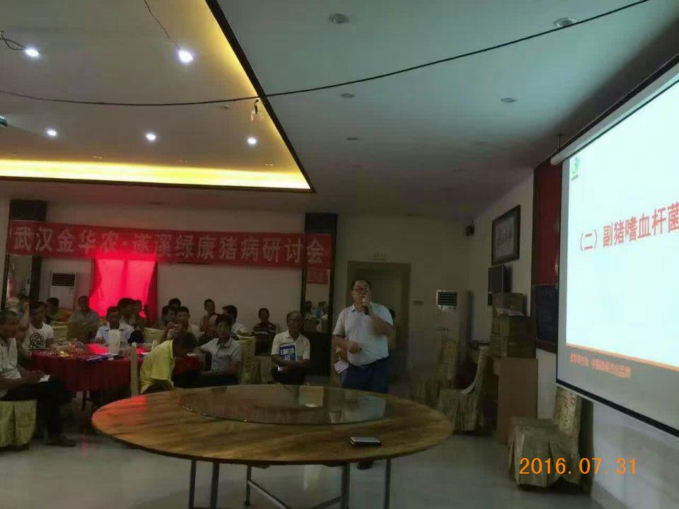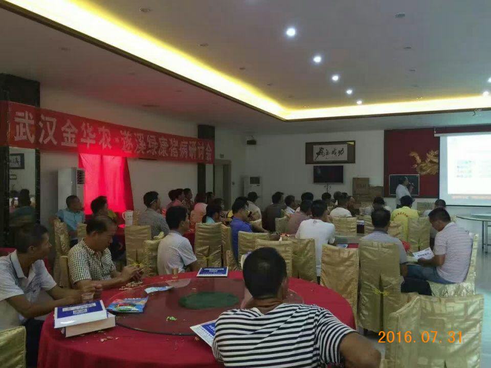 2016年7月12-31日,武漢金華農(nóng)生物科技有限公司在廣東全省境內(nèi)成功舉辦6場多形式豬病交流座談會,其中在“揭陽”、“遂溪”兩地成功召開兩場規(guī)模化養(yǎng)殖場豬病研討會議。雖然天氣有些炎熱,但絲毫沒有阻擋廣大養(yǎng)殖戶來武漢金華農(nóng)會場聽課學習的熱情,向華中農(nóng)業(yè)大學豬病專家咨詢交流的決心。公司7月廣東兩場豬病會議召開十分成功,收到良好的效果,達到預(yù)期目的。