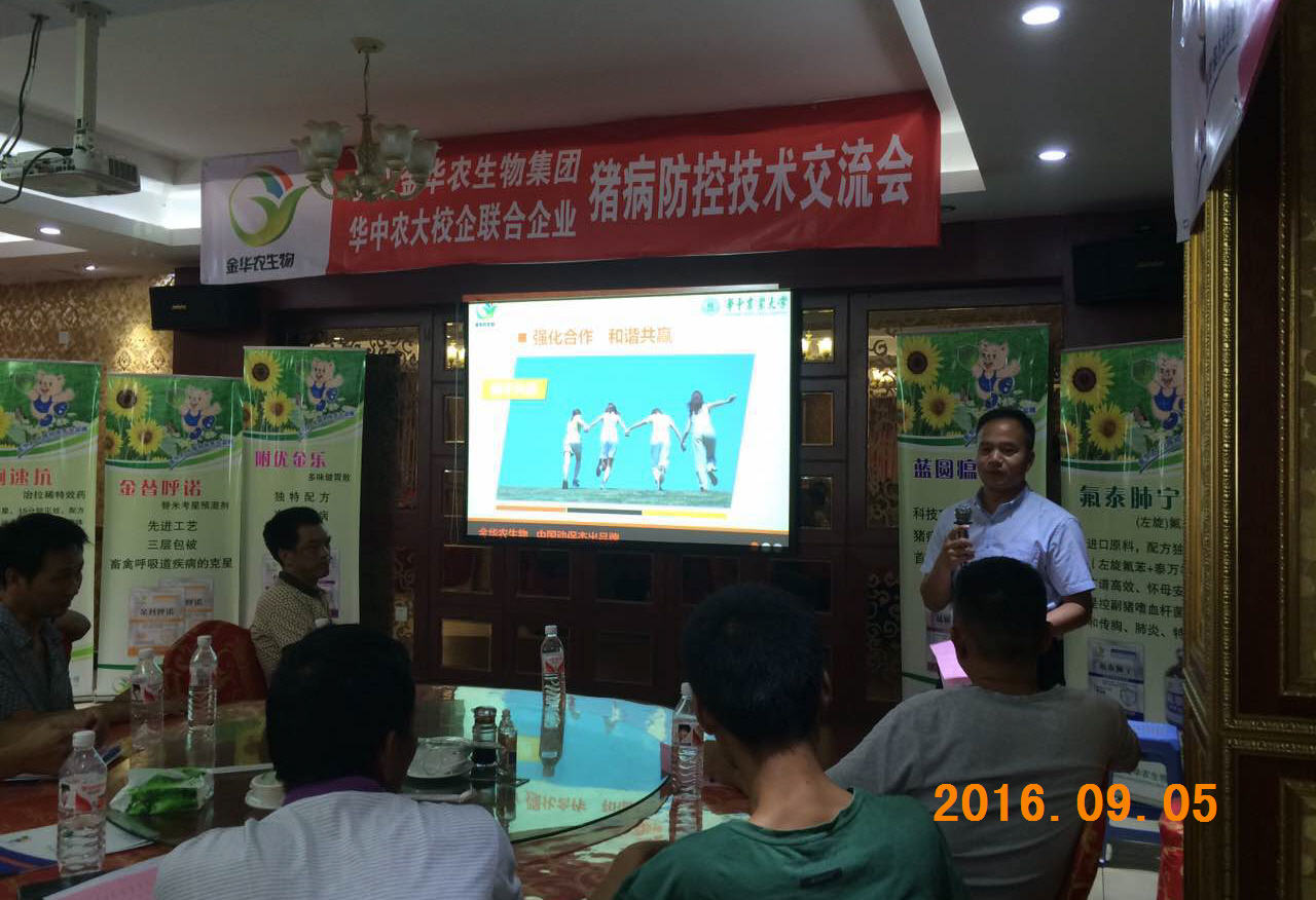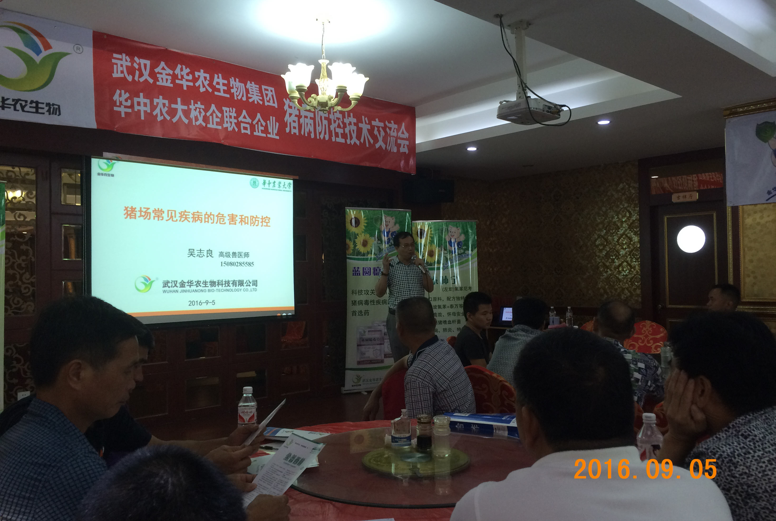 2016年9月5-6日,武漢金華農(nóng)生物科技有限公司“夏秋季常見(jiàn)易發(fā)豬病研討會(huì)”在福建南平勝利召開(kāi),按公司預(yù)定計(jì)劃、陸續(xù)在全國(guó)重點(diǎn)省內(nèi)全面展開(kāi)。公司常務(wù)副總經(jīng)理徐巍博士、公司運(yùn)營(yíng)部主管李名娥老師等人出席本次會(huì)議,會(huì)議主講由公司技術(shù)部吳志良老師領(lǐng)銜主講,南平地區(qū)戰(zhàn)略合作伙伴魏總負(fù)責(zé)會(huì)議主持、組織與策劃,南平地區(qū)大區(qū)經(jīng)理張老師負(fù)責(zé)會(huì)前會(huì)后全程跟蹤與回訪(fǎng)。