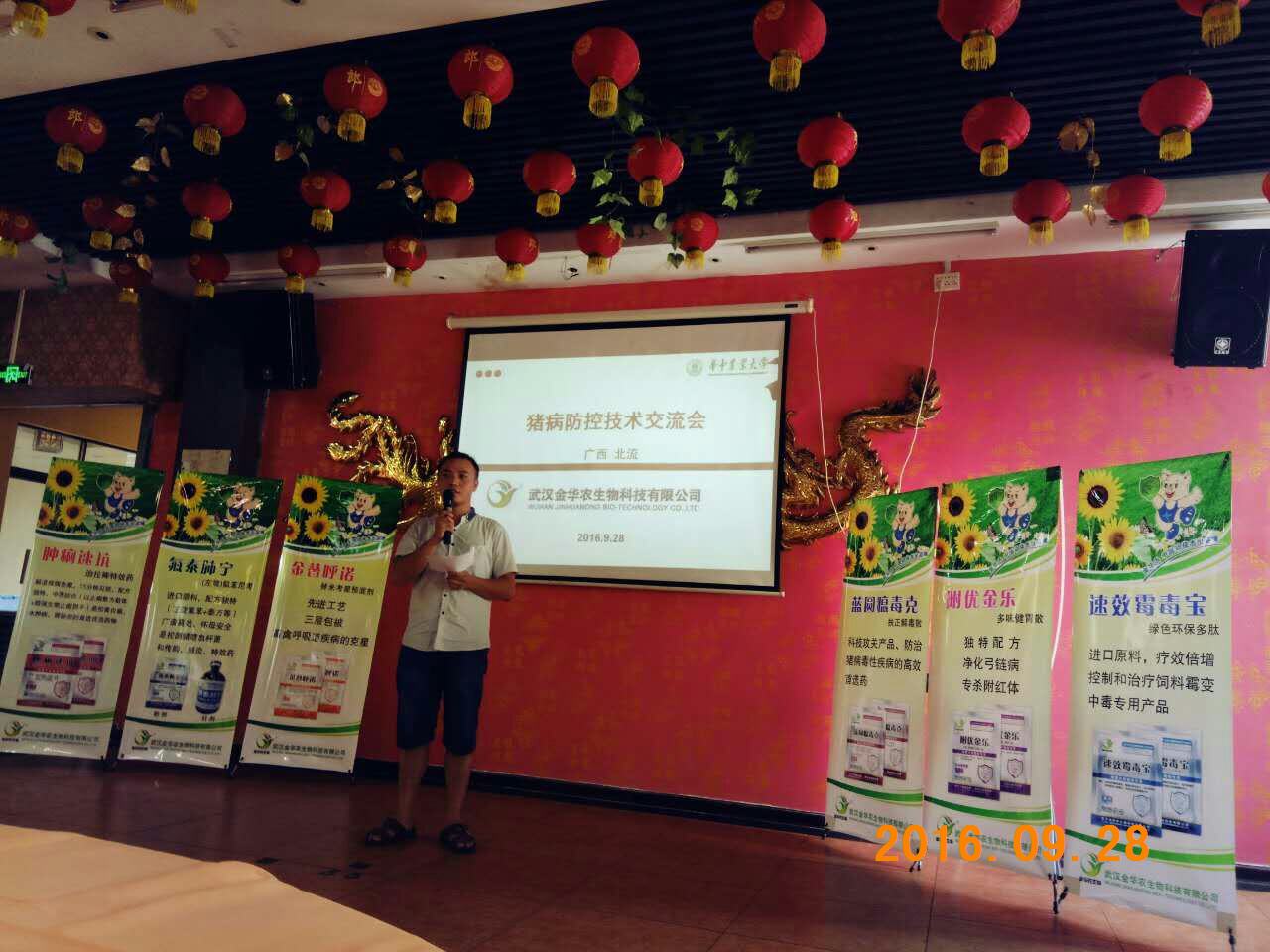 9月27-28日,公司廣西市場“秋冬季豬病防控研討會”勝利召開!本次會議由公司領導常務副總徐巍博士做企業(yè)介紹及公司“一三五”戰(zhàn)略發(fā)展規(guī)劃,公司技術部唐友琦老師主講,玉林北流地區(qū)負責人曹玉廣經(jīng)理策劃與組織?,F(xiàn)場客戶40多人參加會議,雖然很多都是新客戶,但是使用武漢金華農產品后,都覺得產品質量過硬,臨床效果十分顯著,豬病技術服務十分優(yōu)秀,會議最后大家激情都很高,贏得一片片喝彩掌聲,會議取得良好的效果,當場收現(xiàn)金7萬多元,預計后期拜訪總銷量達12萬以上!祝賀優(yōu)秀新人-曹玉廣經(jīng)理首戰(zhàn)告捷!