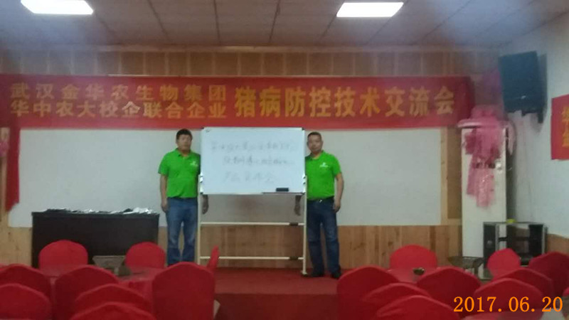 武漢金華農生物貴州遵義豬病研討交流會議于6月20號圓滿成功召開,此次會議由大區(qū)負責人譚經理組織與主辦,技術部原老師主講,會議著重研與交流了夏季豬易發(fā)病和多發(fā)病的防控與治療,其中仔豬黃白痢疾、腸炎、腹瀉,母豬的常規(guī)保健,夏季附紅細胞體病,霉菌毒素的凈化與防控等仍然是養(yǎng)豬戶夏季豬病永恒不變的問題。
