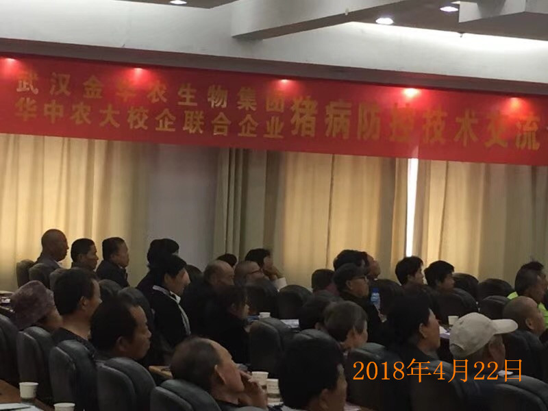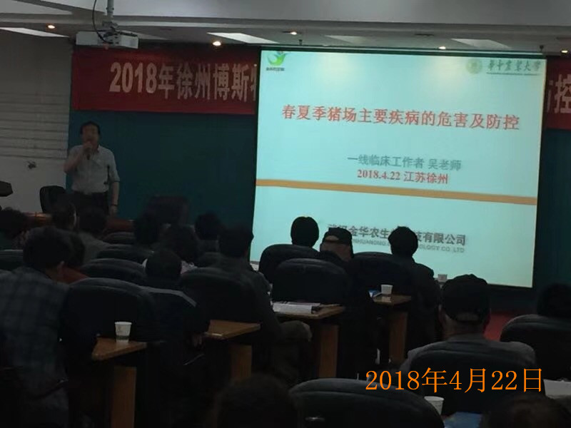 武漢金華農(nóng)生物2018年春季豬病防控研討會(huì)于4月22日在江蘇徐州成功舉辦,會(huì)議舉辦非常成功,取得巨大勝利!公司藥品受到與會(huì)養(yǎng)豬戶的一致認(rèn)可與高度贊美!本次會(huì)議由公司戰(zhàn)略合作伙伴“徐州博斯特動(dòng)物疾病防治研究所”畢總、張老師及其團(tuán)隊(duì)具體負(fù)責(zé)宣傳、策劃、與組織。