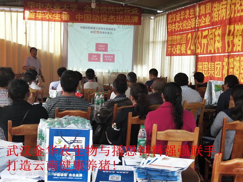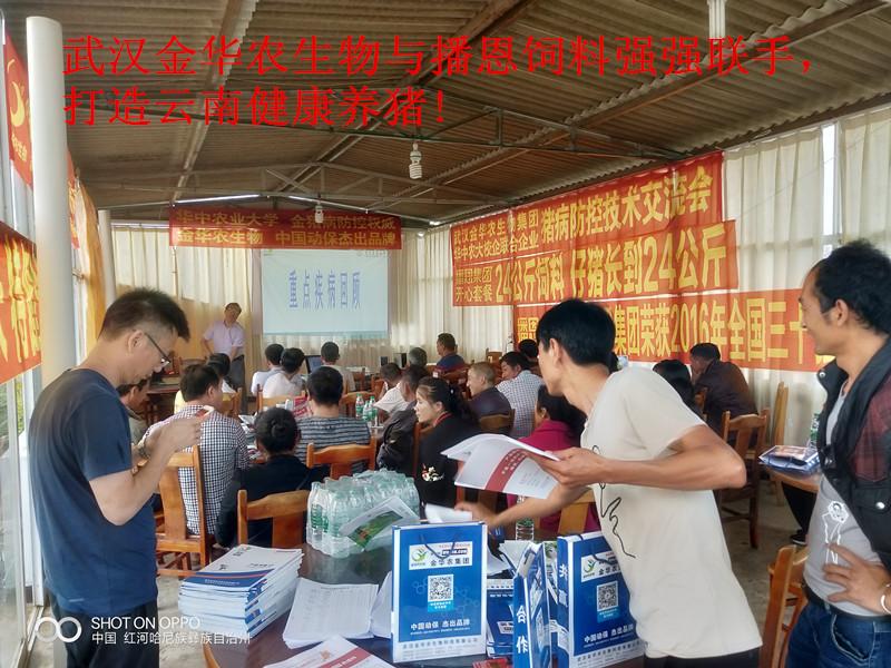 2018年6月25日,武漢金華農(nóng)生物制藥與云南播恩飼料集團(tuán),強(qiáng)強(qiáng)聯(lián)手,戰(zhàn)略互信,友好合作,互惠雙贏,服務(wù)廣大省內(nèi)畜牧養(yǎng)豬戶,打造云南健康養(yǎng)豬生態(tài)產(chǎn)業(yè)鏈第一品牌!武漢金華農(nóng)生物集團(tuán)聯(lián)合華中農(nóng)業(yè)大學(xué)豬病權(quán)威專家教授,結(jié)合云南養(yǎng)豬地域性的實(shí)際情況,于本月25日、28日、30日,連續(xù)舉辦3場送“科技下鄉(xiāng)豬病研討會(huì)”,打造云南養(yǎng)豬特色服務(wù)產(chǎn)業(yè)生態(tài)鏈條,為廣大養(yǎng)豬戶排憂解難,為廣大養(yǎng)豬戶保駕護(hù)航!