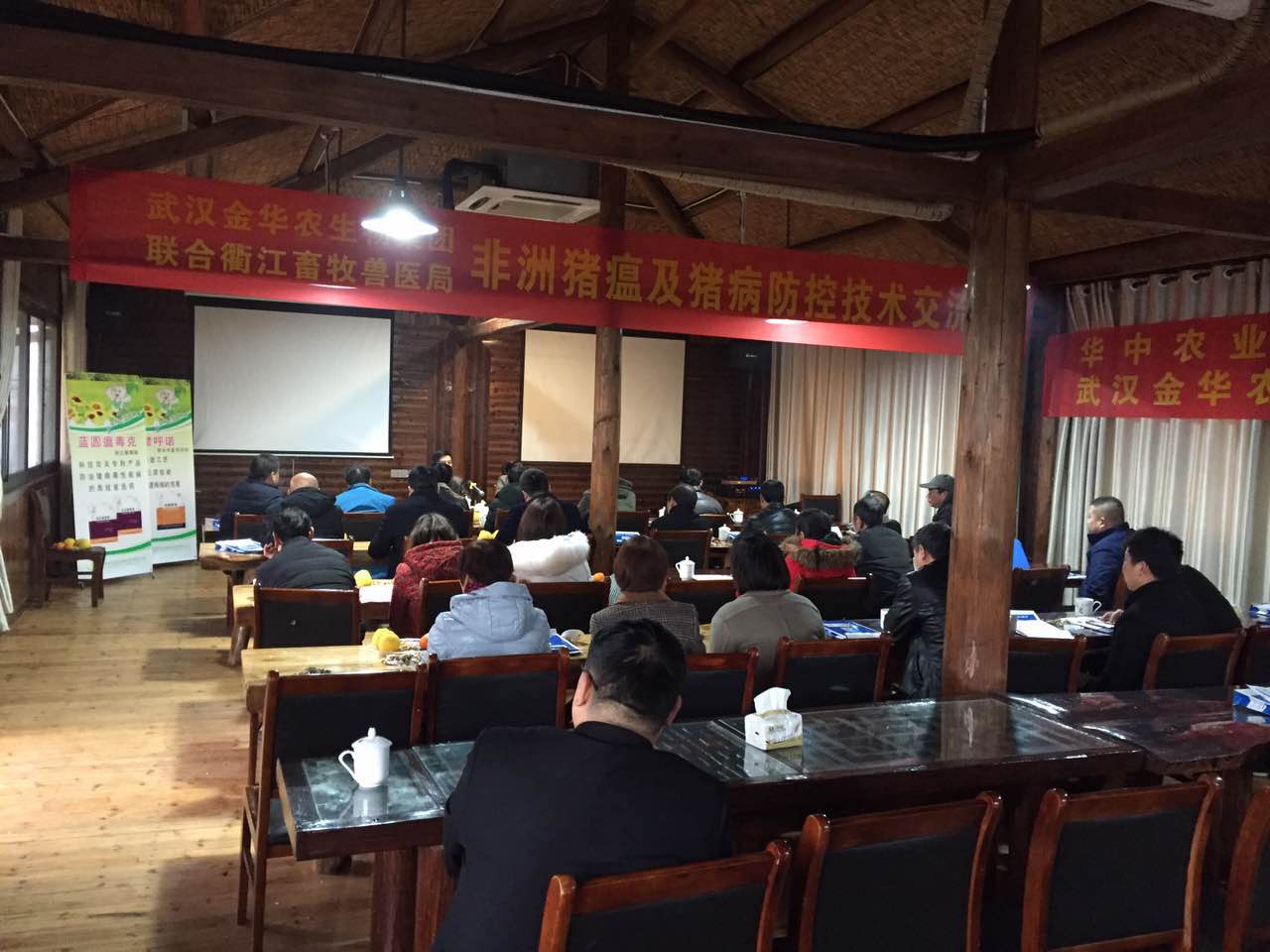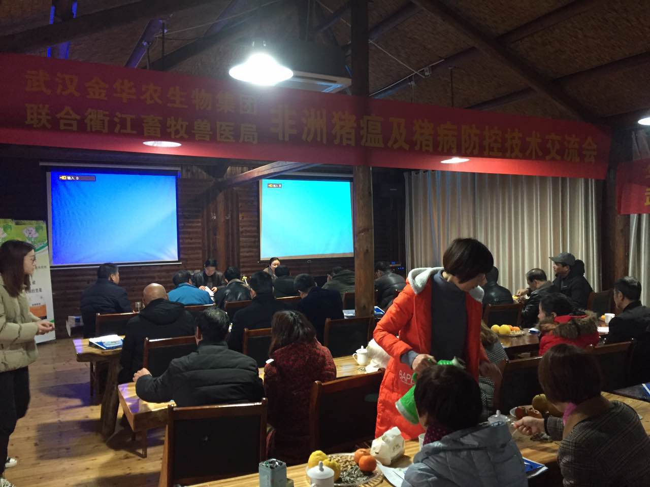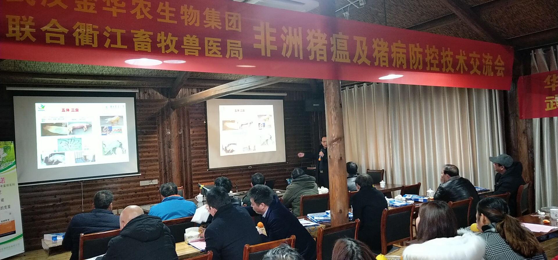 2019年3月1日,武漢金華農(nóng)生物集團(tuán)“第2場(chǎng)”《春季豬病防控研討會(huì) 》在浙江衢江地區(qū)勝利召開(kāi)!本次會(huì)議受到浙江衢江畜牧局的大力支持與高度肯定!聽(tīng)課豬場(chǎng)人數(shù)60多人,會(huì)議達(dá)到預(yù)期目的,豬病知識(shí)授課圓滿(mǎn),養(yǎng)豬戶(hù)學(xué)習(xí)積極認(rèn)真。公司市場(chǎng)運(yùn)營(yíng)部郭昌盛老師參加本次會(huì)議,技術(shù)部吳志良老師負(fù)責(zé)主講,大區(qū)負(fù)責(zé)人張志龍經(jīng)理負(fù)責(zé)組織與策劃。