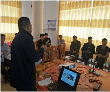 公司技術(shù)部吳志良老師主講和技術(shù)跟蹤服務(wù),公司廣西大區(qū)陸經(jīng)理、龐經(jīng)理、覃經(jīng)理、馬經(jīng)理,4人團隊負責(zé)組織、策劃和宣傳。公司設(shè)計規(guī)定每場會議聽課豬場老板不超過15人,會議達到預(yù)期目的,豬病知識授課圓滿,養(yǎng)豬戶學(xué)習(xí)積極認真。