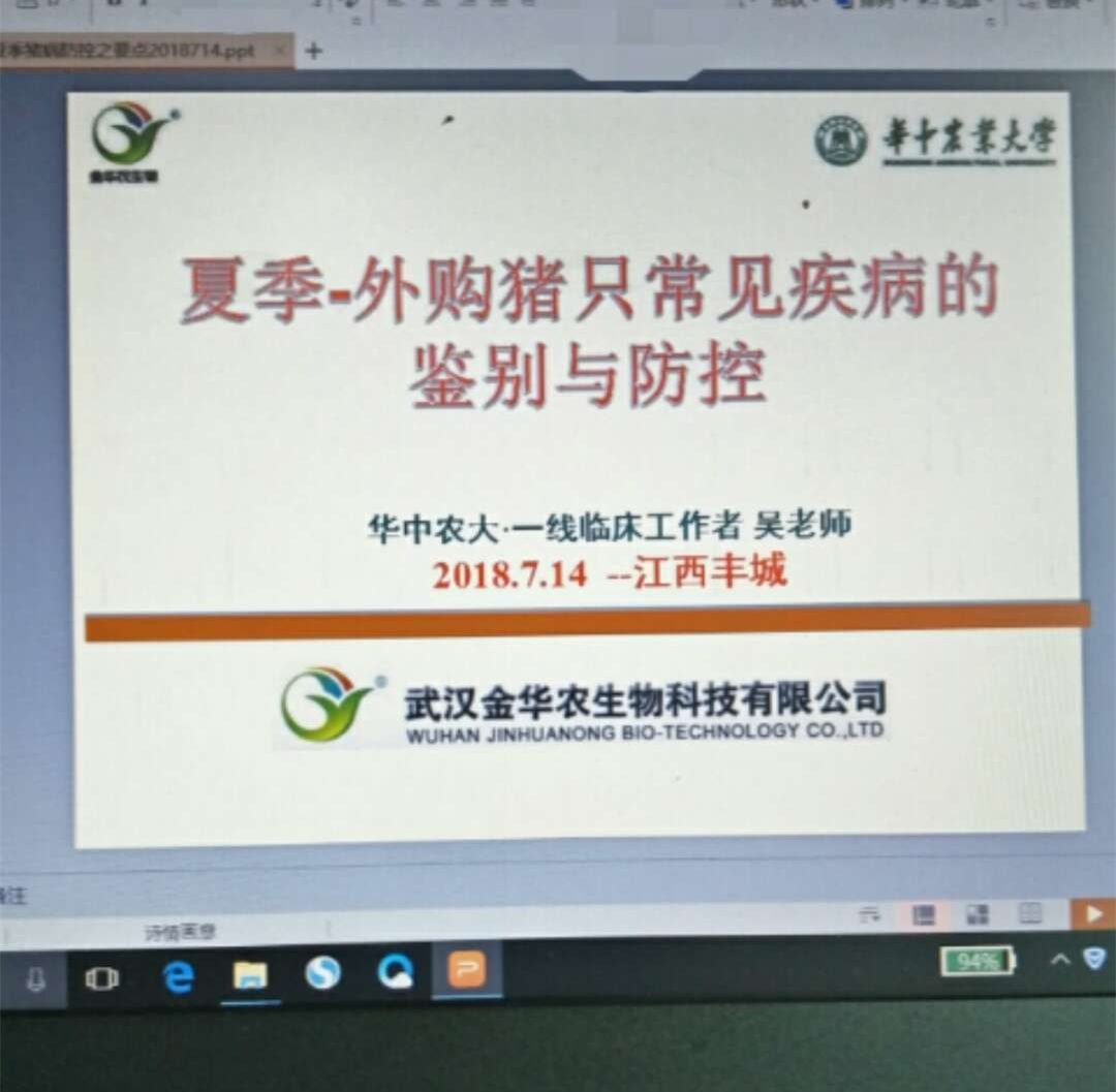 7月14日,由江西大利牧業(yè)(母豬存欄量萬頭)熊總組織,江西大區(qū)蔡經(jīng)理主持,技術(shù)部吳老師主講,武漢金華農(nóng)集團(tuán)養(yǎng)豬技術(shù)交流培訓(xùn)會(huì)在江西豐城縣勝利召開。