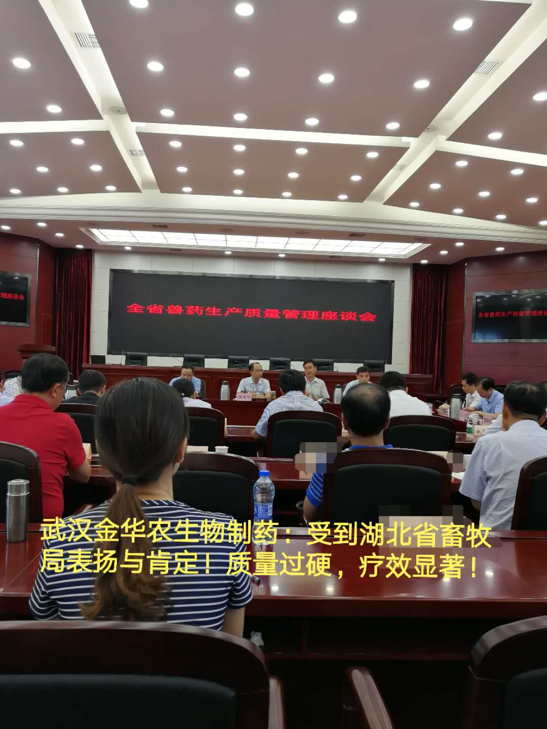 武漢金華農(nóng)生物科技有限公司出席并參加湖北省獸藥質(zhì)量安全大會,會議學(xué)習(xí)黨中央精神,吸取深刻經(jīng)驗(yàn)教訓(xùn),嚴(yán)格杜絕“長春生物疫苗”,防控“非洲豬瘟”事件,會議后,行業(yè)主管領(lǐng)導(dǎo)點(diǎn)名表揚(yáng)“武漢金華農(nóng)生物獸藥”,質(zhì)量過硬,工藝先進(jìn),科技創(chuàng)新突出!好獸藥,武漢金華農(nóng)造!!