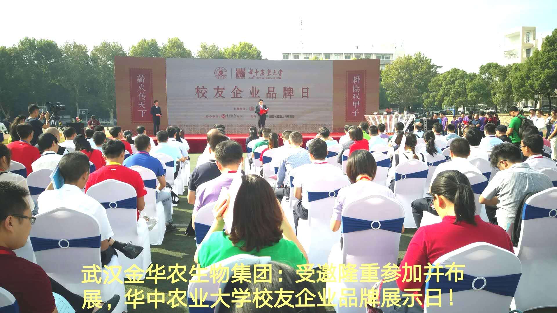 武漢金華農(nóng)生物集團(tuán)應(yīng)邀出席并參加華中農(nóng)業(yè)大學(xué)120周年校慶,及校友企業(yè)品牌展示日活動!公司領(lǐng)導(dǎo)富勝總經(jīng)理親自出席,并作為嘉賓代表致辭!武漢金華農(nóng)生物作為“湖北省優(yōu)秀企業(yè)”、“大學(xué)校企合作典范”、“國家科技創(chuàng)新企業(yè)”,過硬質(zhì)量,杰出品牌,顯著療效,良好口碑,受到畜牧行業(yè)與廣大養(yǎng)殖戶朋友一致認(rèn)可與贊美!