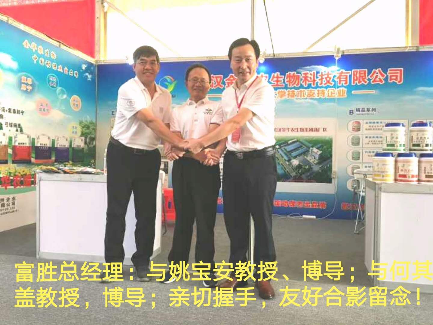 熱烈歡迎華中農業(yè)大學三位博士生導師、有影響力學者、獸醫(yī)臨床專家,姚寶安教授,何其蓋教授,錢平教授,蒞臨武漢金華農生物集團所在的校友企業(yè)品牌展示區(qū),友好交談,達成共識,合影留念!