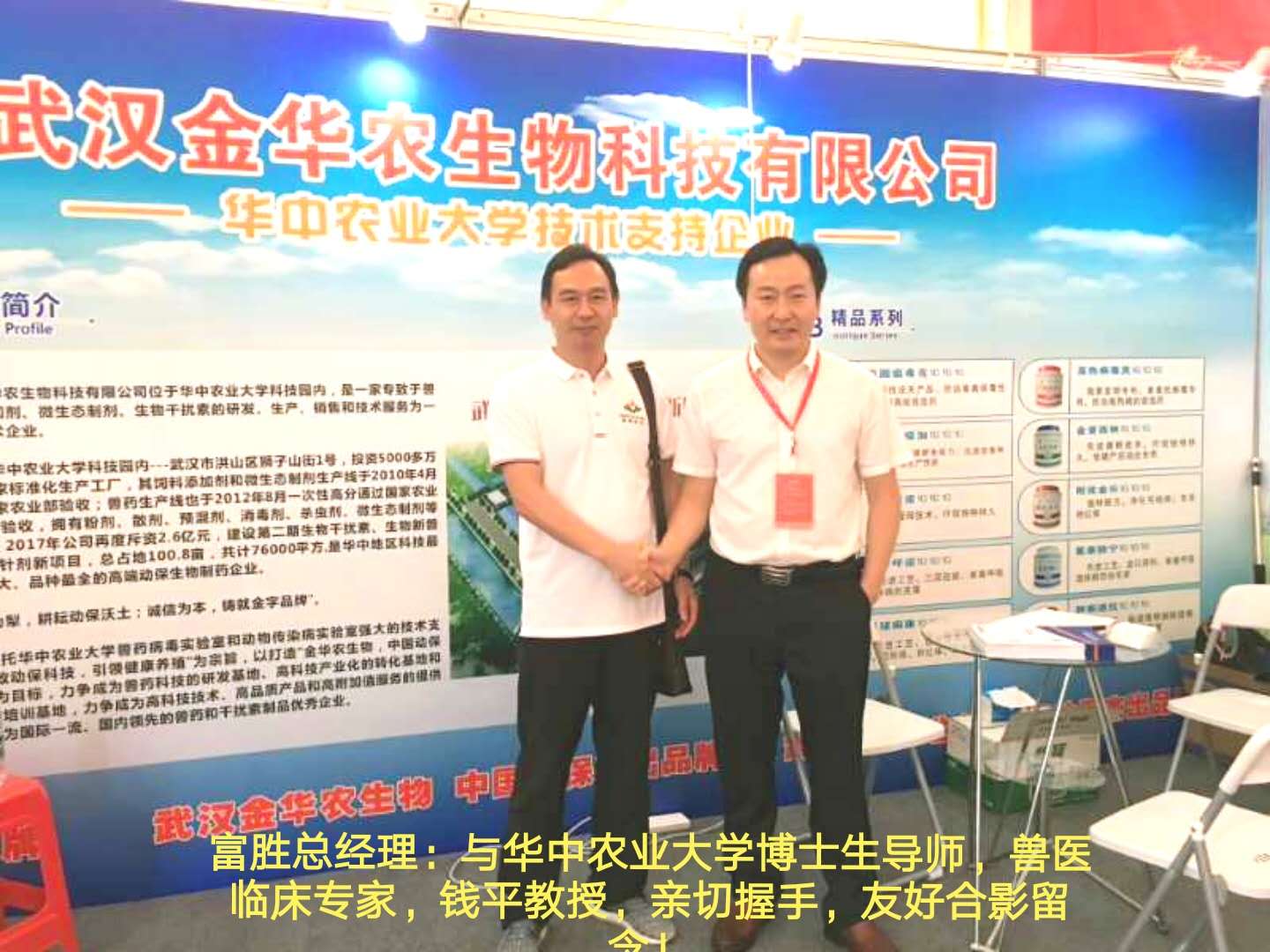 公司領導富勝總經(jīng)理、常務副總徐巍博士、生產(chǎn)副總黃凡博士、技術總監(jiān)姚教授、營銷總助郭昌盛導師、人事總助梅寒導師、市場部、企劃部、人事部、招商部等其他部門負責人均參加本次活動?;顒悠陂g,華中農業(yè)大學校領導、行業(yè)主管領導、各界友人和、中外留學生、和校友,紛紛來到武漢金華農集團品牌展示區(qū),參觀考察、友好交流,和洽談各省區(qū)代理合作項目,深度對接戰(zhàn)略合作,希望武漢金華農優(yōu)質獸藥動保產(chǎn)品,以最快最優(yōu)的速度走向祖國大地,供應服務給每個養(yǎng)殖區(qū)域!