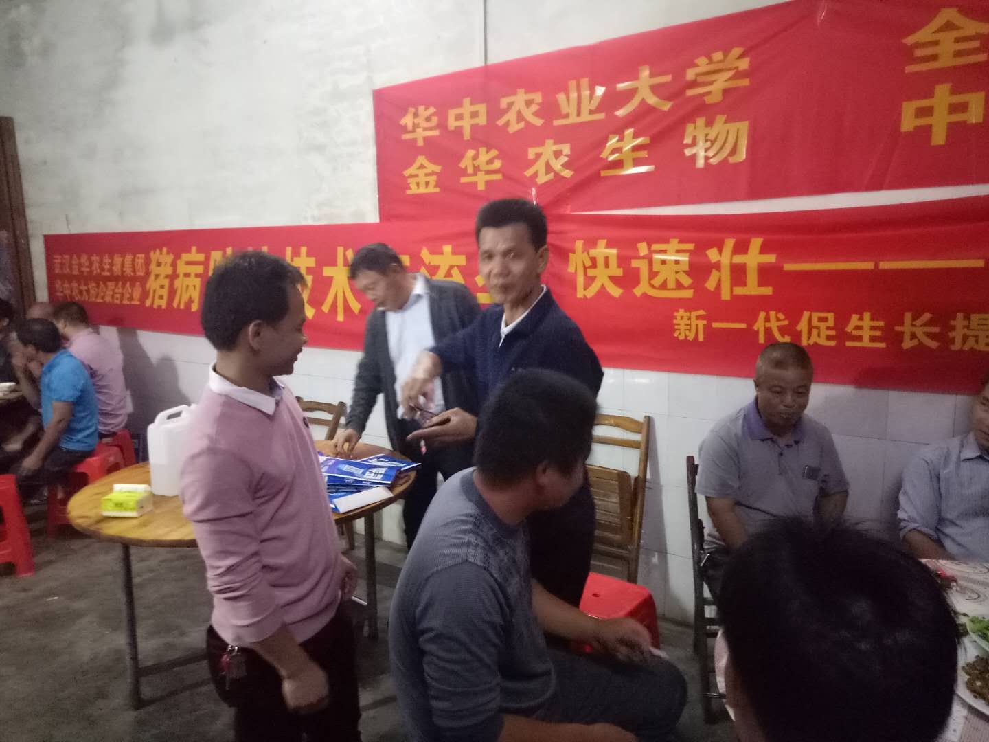 2018年10月16~18日,武漢金華農(nóng)生物集團(tuán)“廣西專(zhuān)屬圓桌會(huì)議”連續(xù)3場(chǎng)在廣西玉林博白地區(qū)拉開(kāi)帷幕,此次連續(xù)3場(chǎng)圓桌會(huì)議,形式多樣,內(nèi)容新穎,學(xué)習(xí)輕松,接地氣交流,養(yǎng)豬戶效果反饋明顯。公司廣西辦事處龐總負(fù)責(zé)組織、策劃和宣傳,技術(shù)部原老師主講和技術(shù)跟蹤服務(wù),區(qū)域銷(xiāo)售陸經(jīng)理、劉經(jīng)理、鄧經(jīng)理參加本次會(huì)議,并負(fù)責(zé)區(qū)域銷(xiāo)售計(jì)劃的落實(shí)。第一場(chǎng)會(huì)議聽(tīng)課豬場(chǎng)老板50多人,會(huì)議達(dá)到預(yù)期目的,豬病知識(shí)授課圓滿,養(yǎng)豬戶學(xué)習(xí)積極認(rèn)真。